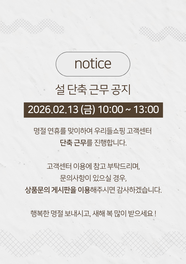 이에 대하여 주식회사 우리들쇼핑은 통신판매중개자로서 통신판매의 당사자가 아니므로 일체 책임을 지지 않습니다.